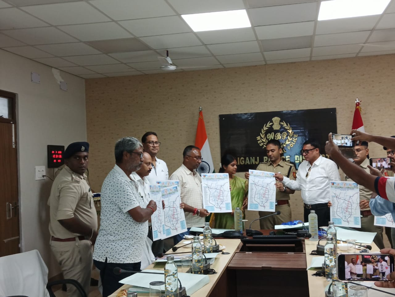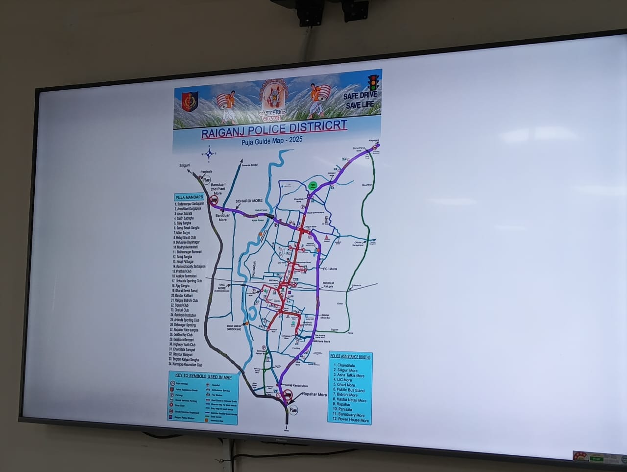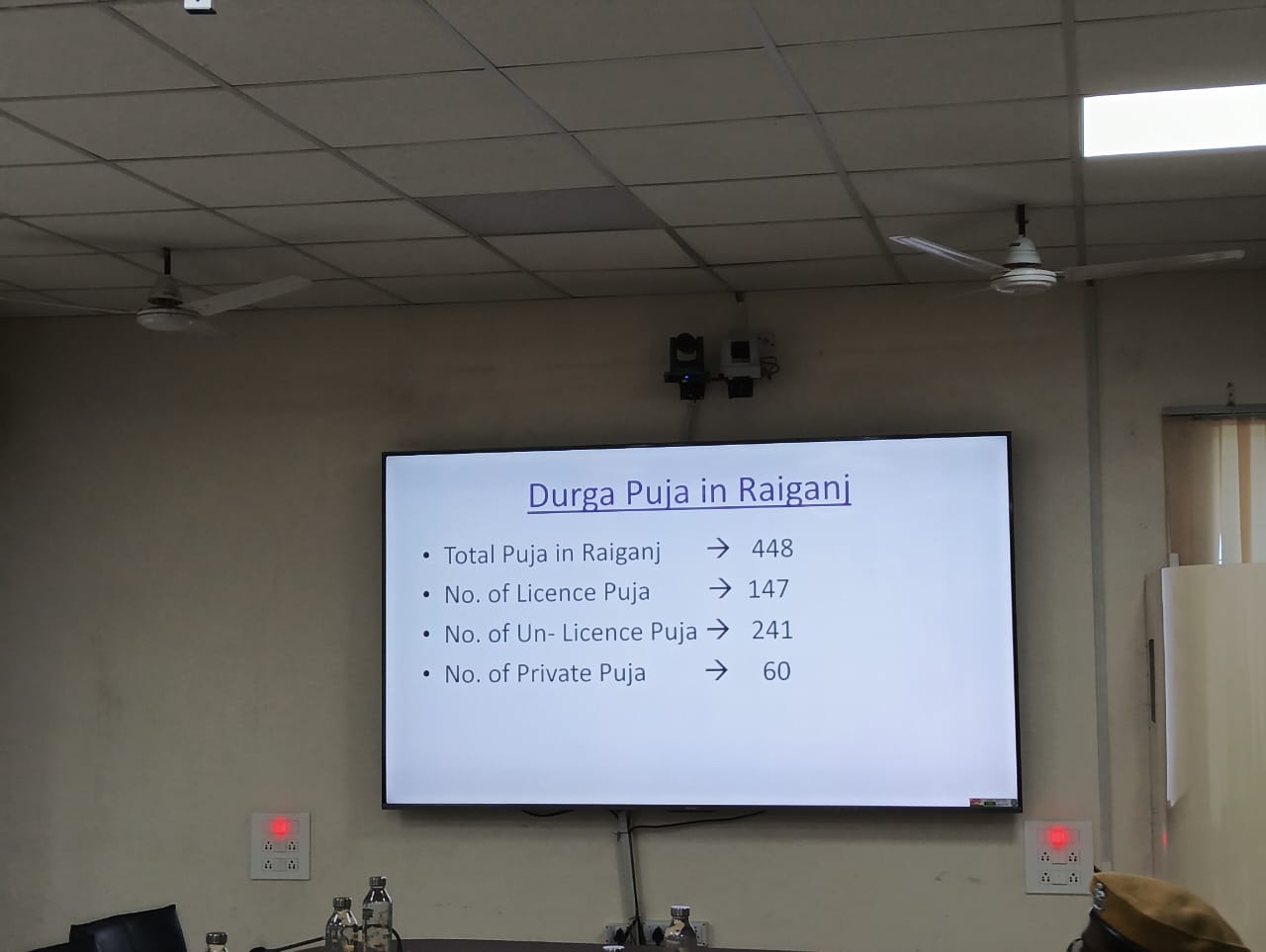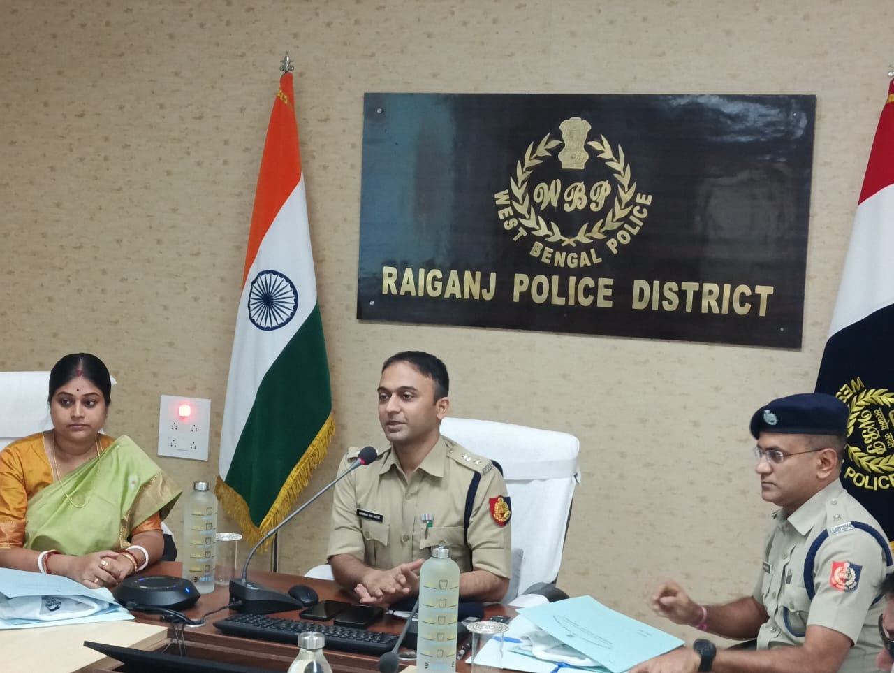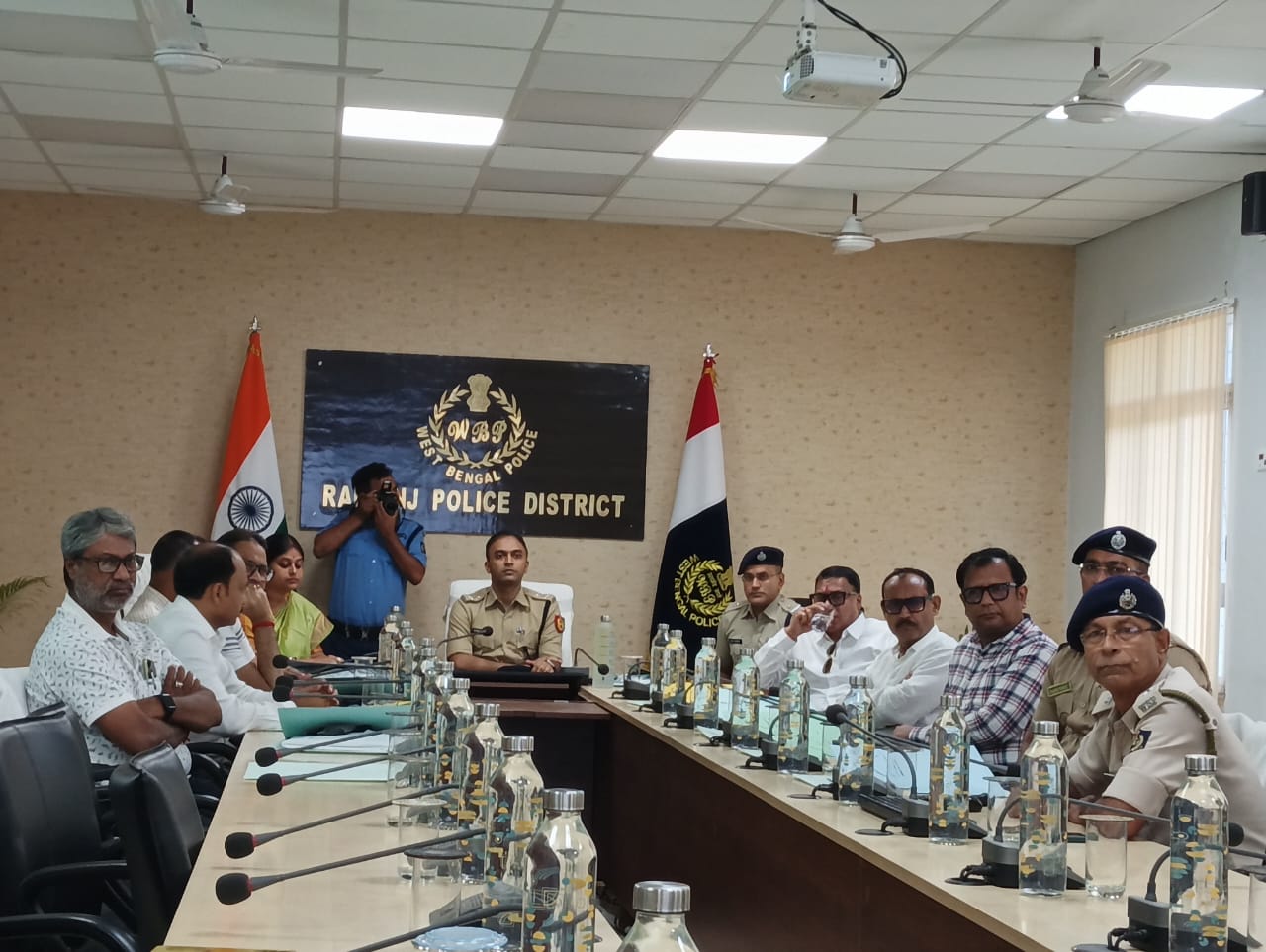 কর্ণজোড়াতে অবস্থিত রায়গঞ্জ পুলিশ জেলার আরক্ষাধীক্ষকের করণ – এ আসন্ন শারদীয়া উৎসবকে কেন্দ্র করে গাইড ম্যাপ প্রকাশিত হল এবং ট্রাফিক এরেঞ্জমেন্ট নিয়ে বিস্তারিত আলোচনা করা হল, সাথে শিশু ও বয়স্ক নাগরিকদের প্রতিমা দর্শনে যাতে কোনপ্রকার অসুবিধার সম্মুখীন না হতে হয় তার জন্য বিশেষ ব্যবস্থা গ্রহণ করা হয়, টোটো নিয়ন্ত্রণ , বিশেষ ভলিন্টিয়ার নিয়োগ, সর্বোপরি সাধারণ নাগরিকদের প্রতিমা দর্শনে সবরকম সহায়তা প্রদানে তৎপরতার সাথে কাজ করছে জেলা পুলিশ প্রশাসন ।আজকের মিটিংয়ের কিছু মুহূর্ত তুলে ধরা হল।