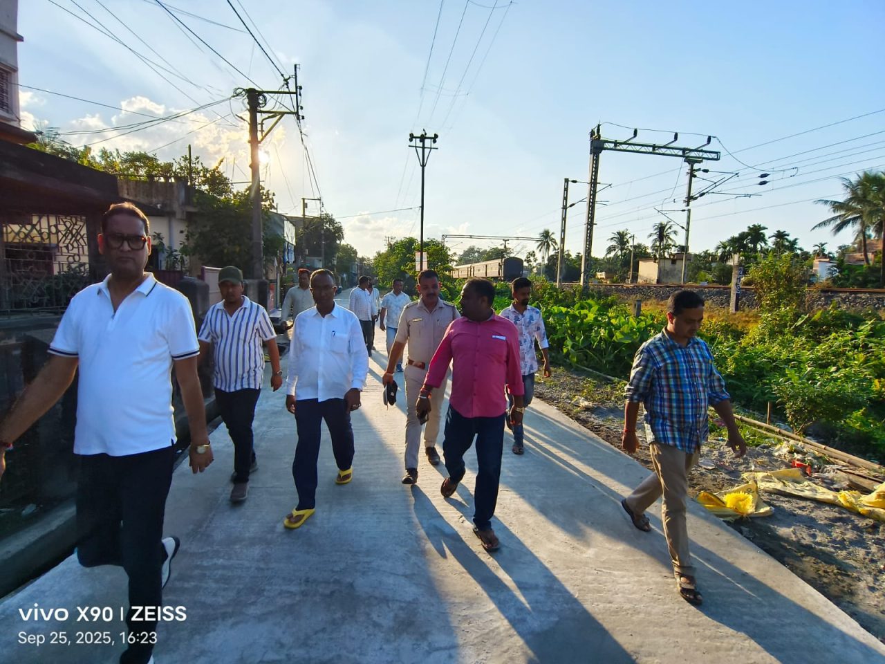 আজকে আমরা এম. ই . ডি’ র এসিস্ট্যান্ট ইঞ্জিনিয়ারকে সঙ্গে নিয়ে বন্দর শ্মশান ঘাট থেকে সোজা দক্ষিণে সুইচ গেট পর্যন্ত তথা ইসকন মন্দির পর্যন্ত নির্মীয়মান রাস্তা পরিদর্শনে গিয়েছিলাম।৯৩ লক্ষ টাকার অধিক ব্যয়ে এই বাঁধের রাস্তায় প্রয়োজন ভিত্তিক গার্ড ওয়াল তৈরী করে কংক্রিট রোড নির্মাণের কাজ চলছে। এছাড়াও কুলিকের মরা নদীতে একটি ক্যানেল ড্রেন আছে যা অনেকটাই আবর্জনা দ্বারা প্রায় বন্ধ হয়ে গিয়েছে , সেটিও পরিষ্কার করবার জন্য আমরা পরিদর্শন করলাম , যাতে বর্ষাকালে কাঞ্চনপল্লী – বন্দর সংলগ্ন এলাকার জমা জল দ্রুত নিষ্কাশনের স্বার্থে এবং উপলব্ধি করলাম এই নির্মীয়মান বাঁধ রাস্তায় দুটো ইলেকট্রিক পোল আছে সেই সংশ্লিষ্ট পোল দুটো সেখান থেকে সরালে রাস্তায় আরো গতি আসবে বলে অনুধাবন করলাম এবং সেই পোল দুটো সরানোর উদ্যোগ গ্রহণ করলাম।আজকের পরিদর্শনের কিছু ছবি তুলে ধরা হল।